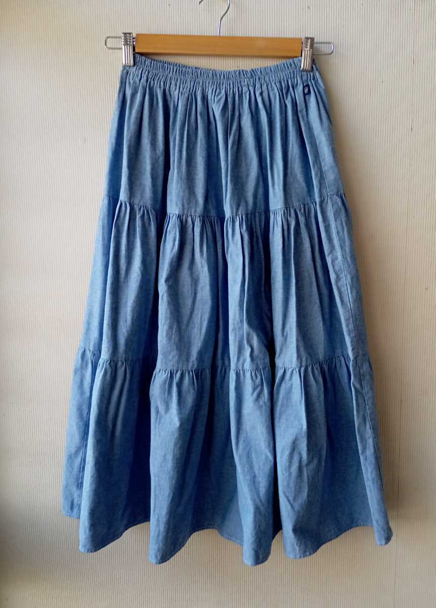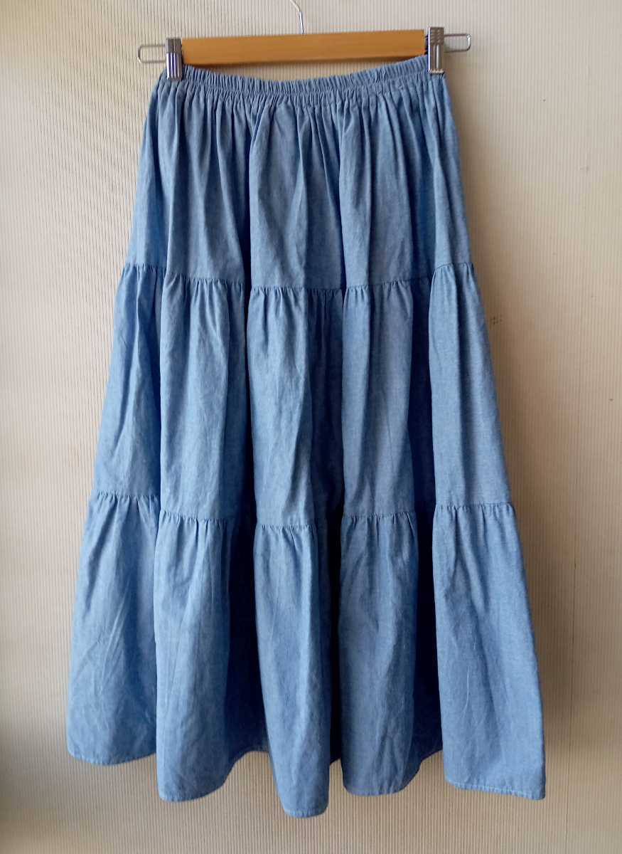 ロックマウント Rockmount ティアードスカート ブルー シャンブレー コットン 綿 ロング スカート