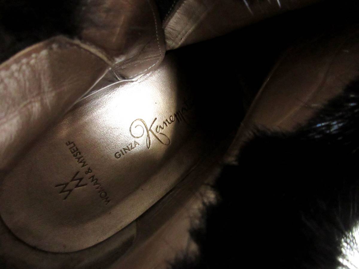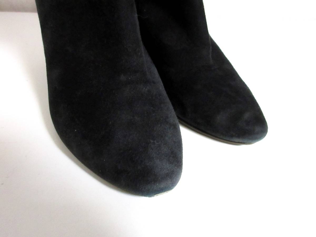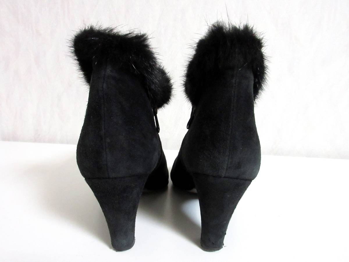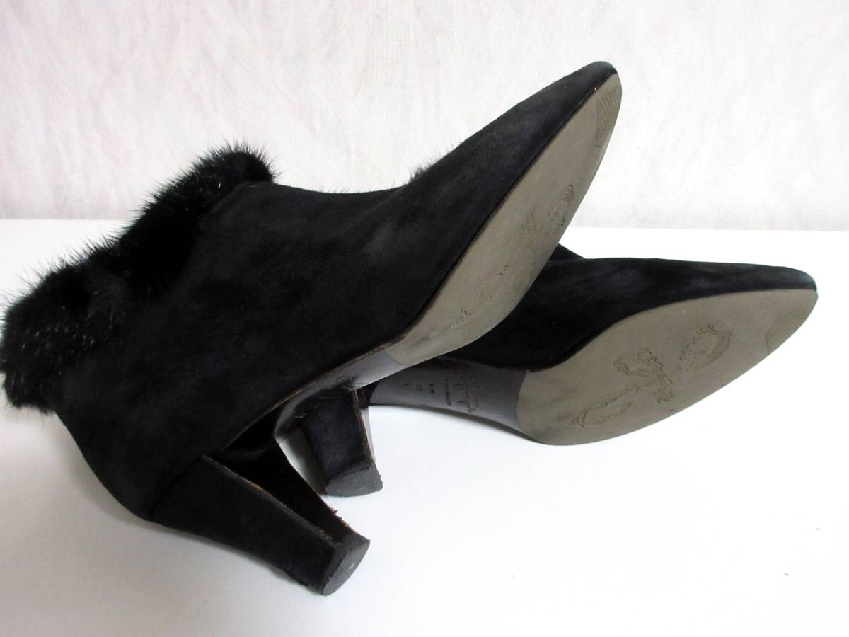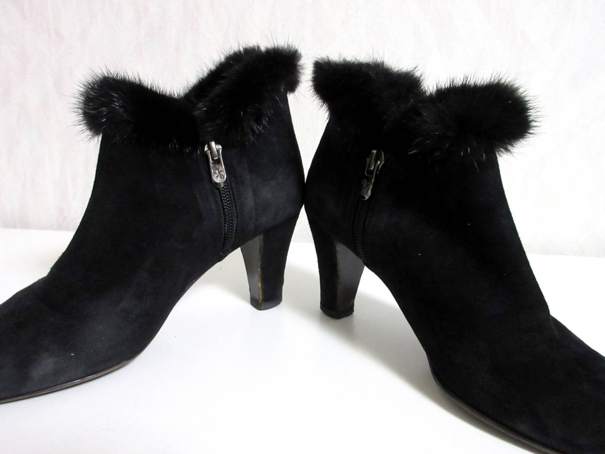 銀座かねまつ スエード レザー ファー付き ショートブーツ ブーティー 黒 ブラック 23 北4077
