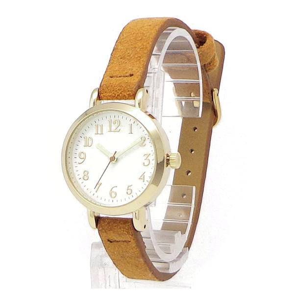 | 特別価格・処分価格のウォッチです♪ 見やすいアラビア数字インデックス・3針クォーツ時計です♪ スエード調仕上げのベルトがおしゃれです♪ シックなベルトカラーにゴールドケース・尾錠が映えます♪ |