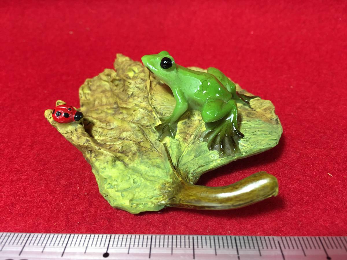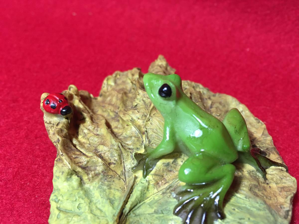★【逸品堂】★ 緑色 カエル テントウムシ 天道虫 飾り物 置物 かえる 樹脂 てんとう虫 木の葉 蛙 リアル動物 フェイク動物 模型 ジオラマ