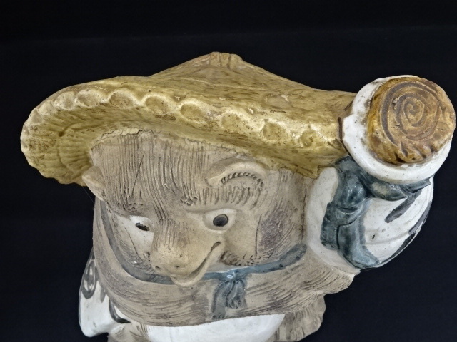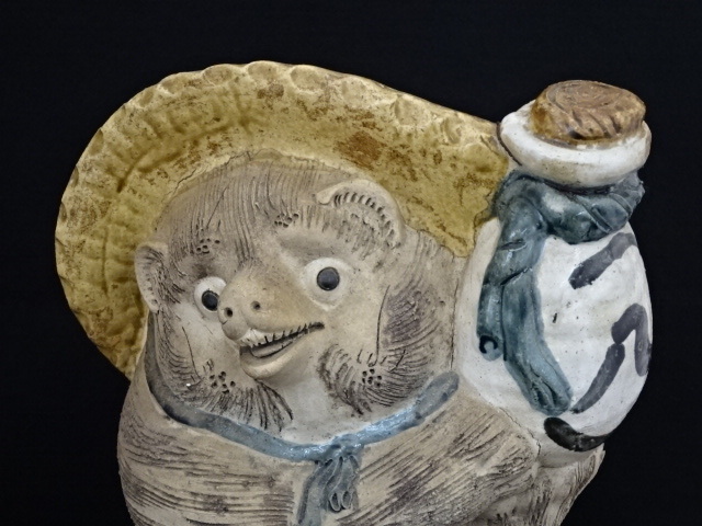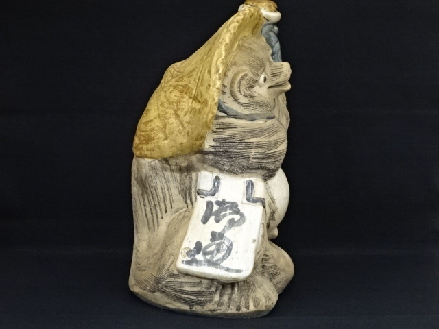 12125A ● 商売繁盛 縁起物 信楽焼 狸庵作 在銘 狸置物 信楽たぬき 高さ約41cm ◆ 置物 たぬき 昭和レトロ