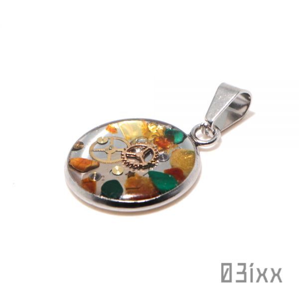 【送料無料・即決】SPS003 ペンダントトップ 天然石 歯車 アンバー マラカイト ステンレス スチームパンク風味 03ixxSPペンダント
