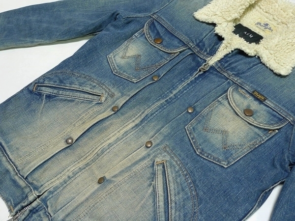 美品AKMxWRANGLERラングラー別注[24MJZ DenimBoaJaket]デニムボアジャケットS Used加工 | |||