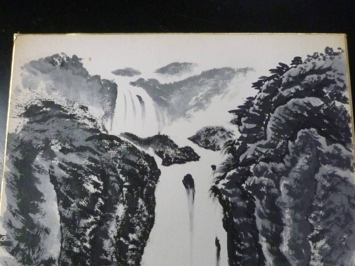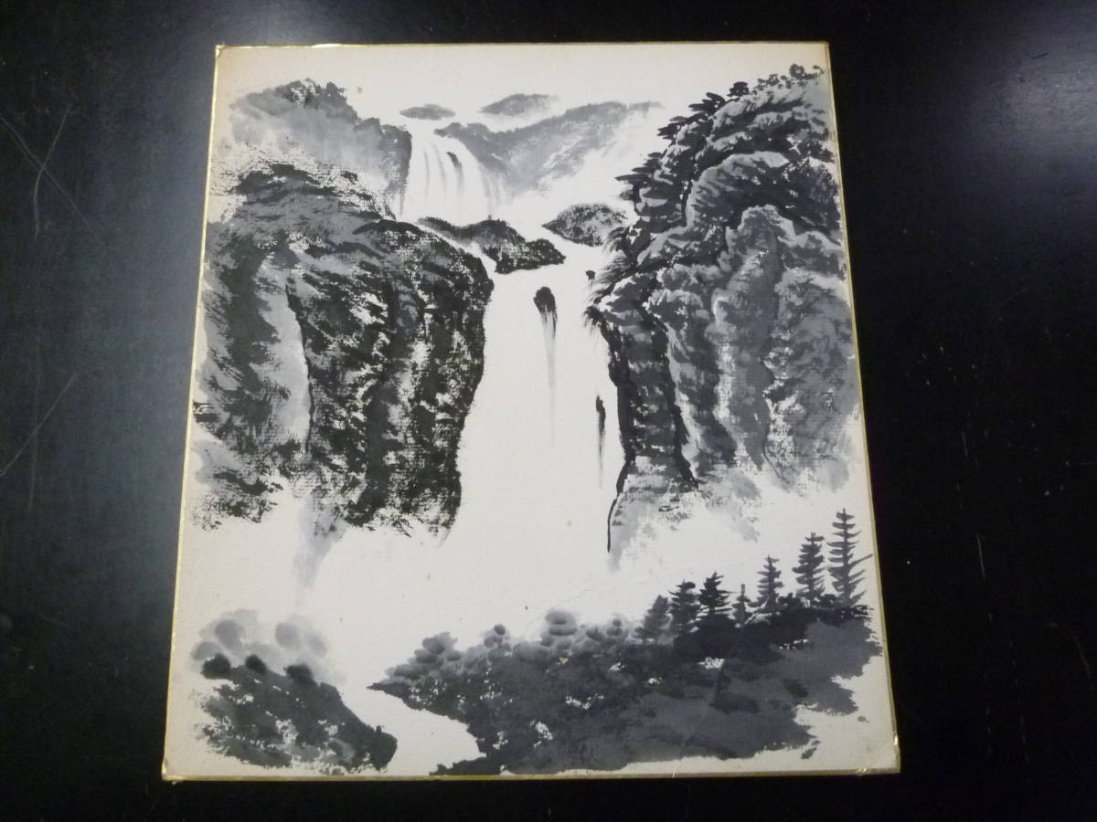 22 P №A 墨絵 「滝」図 水墨画