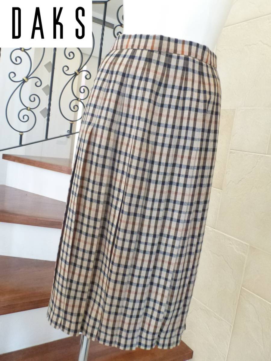 5万 美品 DAKS(ダックス)★ ウール チェック柄 プリーツスカート S相当
