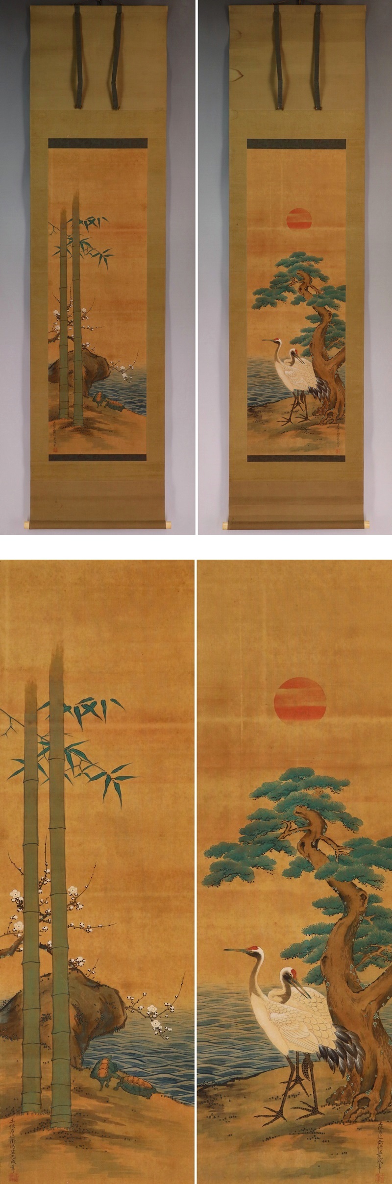 | №2109105【真作】土佐光成【双幅・慶祝図】◆絹本◆合箱◆掛軸 | |