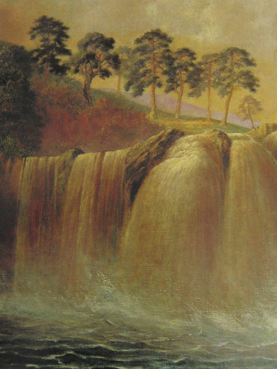 諌山麗吉、「沈堕之滝」、希少な額装用大判画集の額装画、オーダーマット付・日本製新品額入り、送料無料