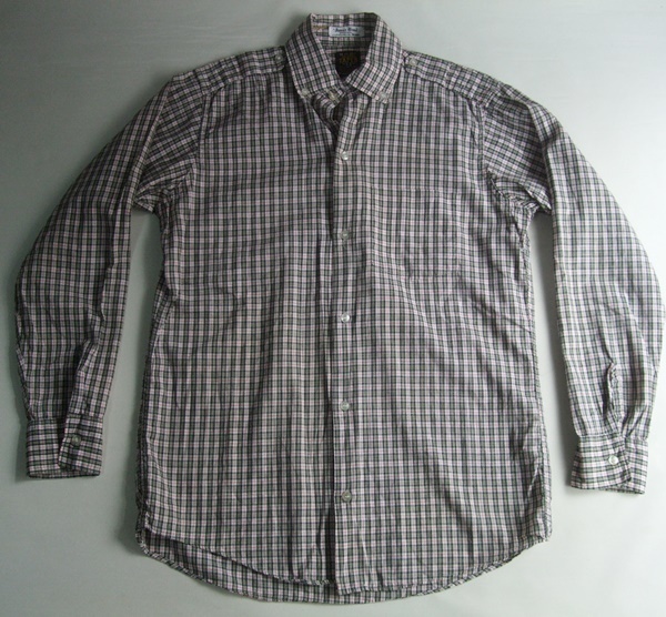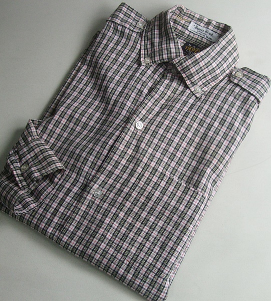襟芯のあるボタンダウンシャツで肩にエポーレットがあります。