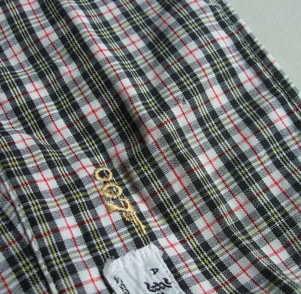 黒い布タグの3辺がホツレ取れかかっていますので、簡単に端部分を糸で留めています。(画像参照)