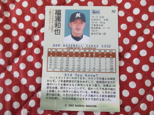 ★BBM 2002 ②★ 762 福浦和也 千葉ロッテマリーンズ ベースボールカード トレカ♪