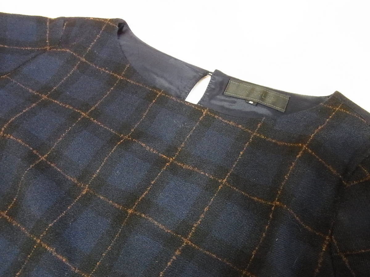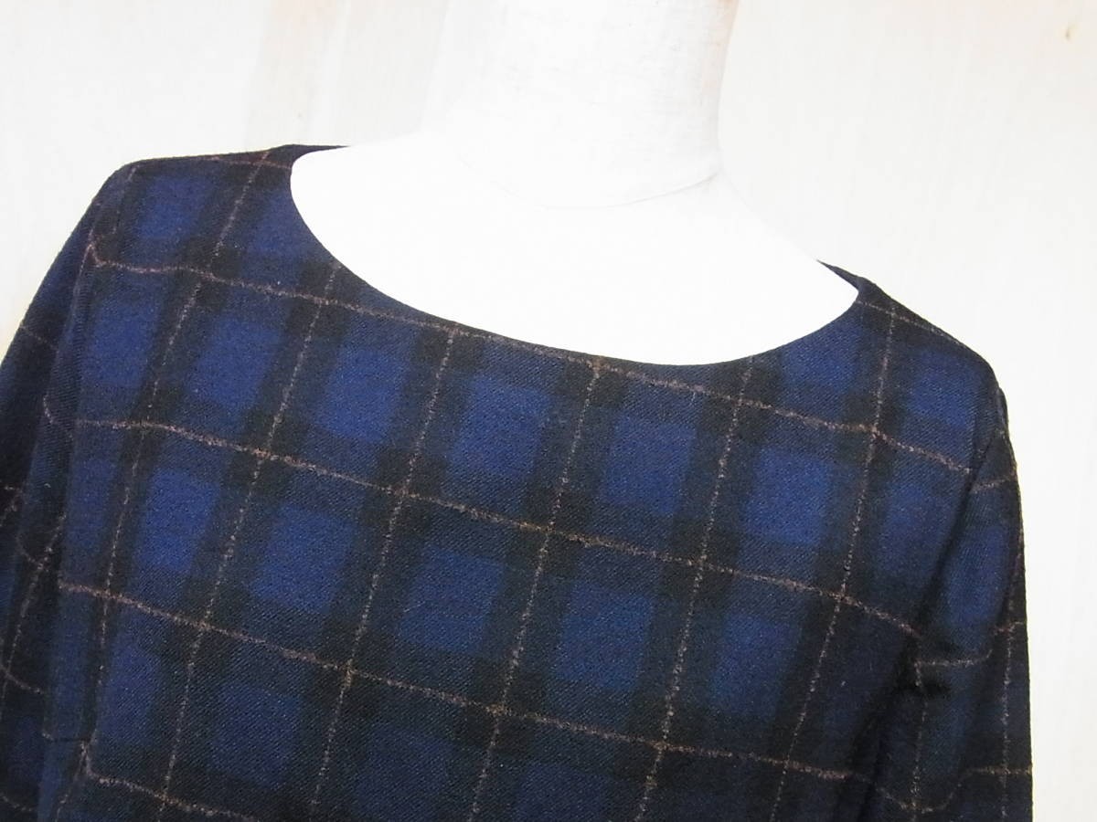 綺麗 UNTITLED アンタイトル 格子柄 ウール ノーカラー 長袖トップス 濃紺 サイズ2 | ||