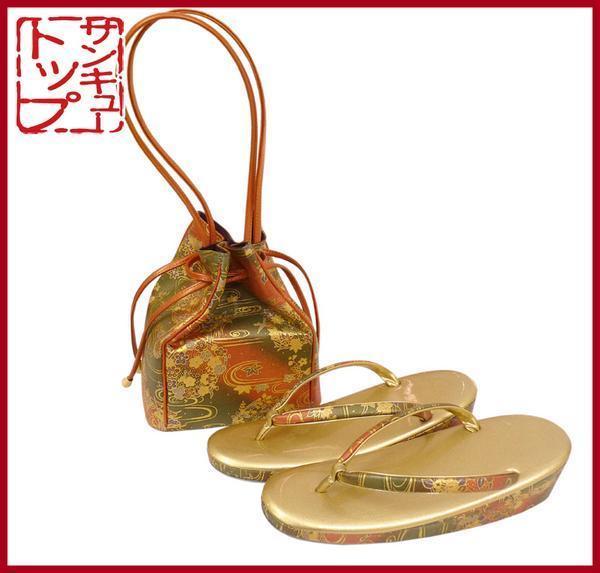 ![]() | 高い品質を誇る東京謹製 キンワシ印の草履と巾着のセットで 御座います。 橙色と草色の2色使いで吉祥華と流水を 華やかに描いた文様で御座います。 小物で一つ上の装いをお楽しみ下さいませ。 お見逃し無く!! ●草履寸法 サイズ :23cm(Mサイズ)草履底面 かかと高さ:5cm ●巾着寸法 幅 :16cm 高さ:18.5cm(持ち手含まず) マチ幅:10cm (平置き採寸の為多少の誤差はご容赦下さいませ。) | ||