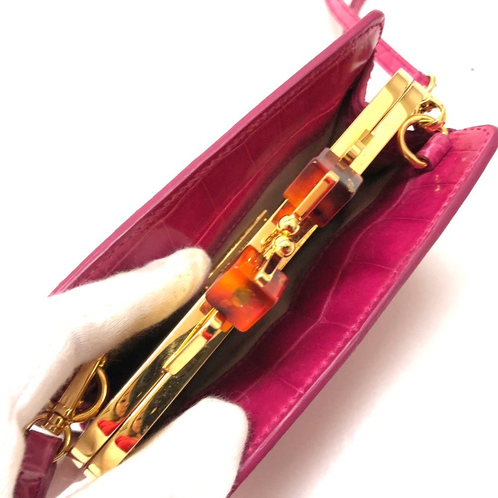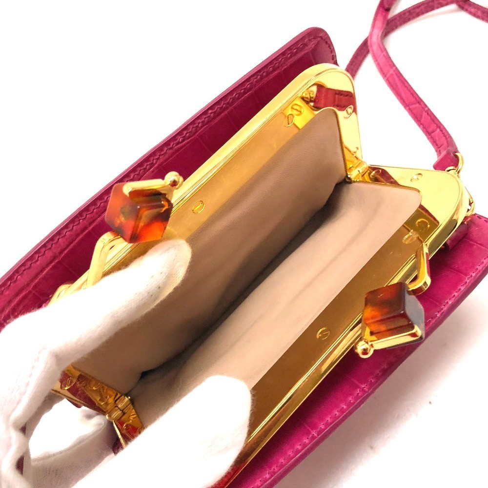 Miu Miu ミュウミュウ ポシェット がま口 ショルダーバッグ //クロコ型押しレザー レディース ピンク