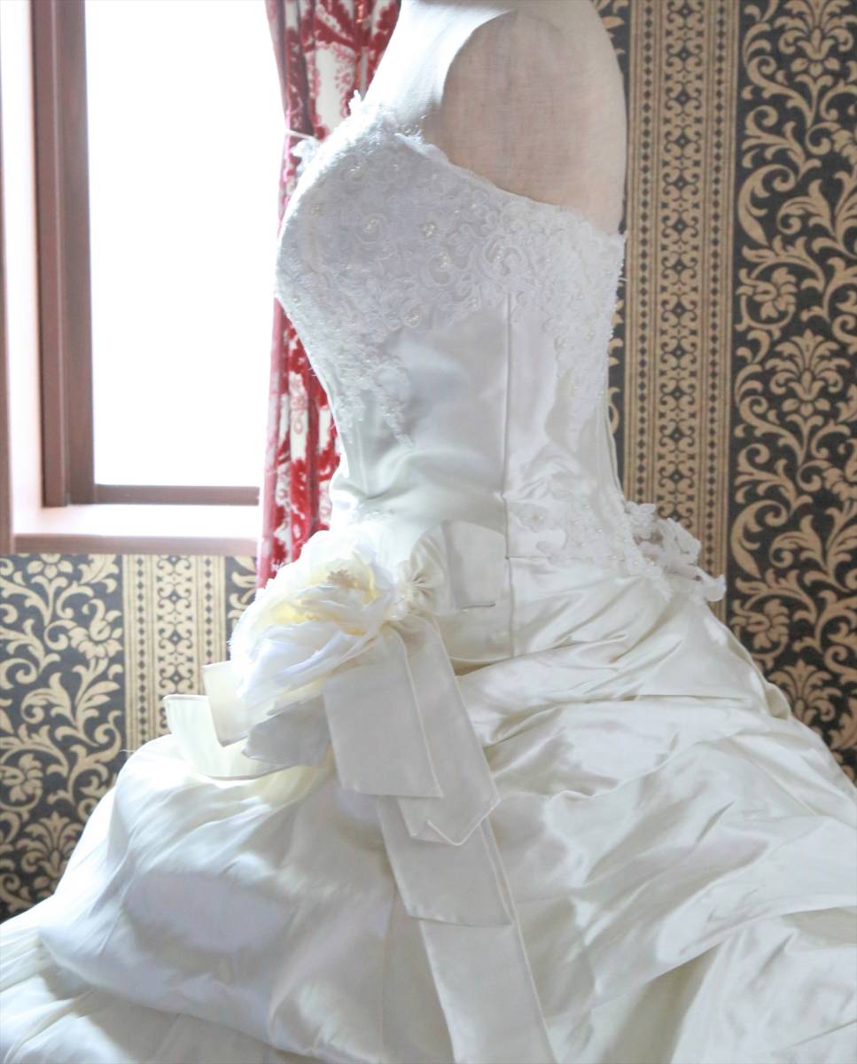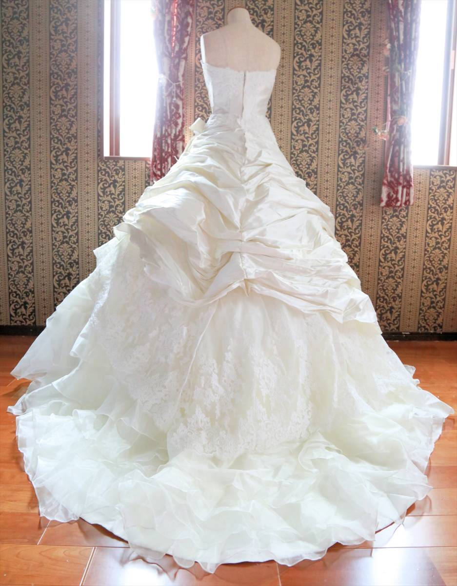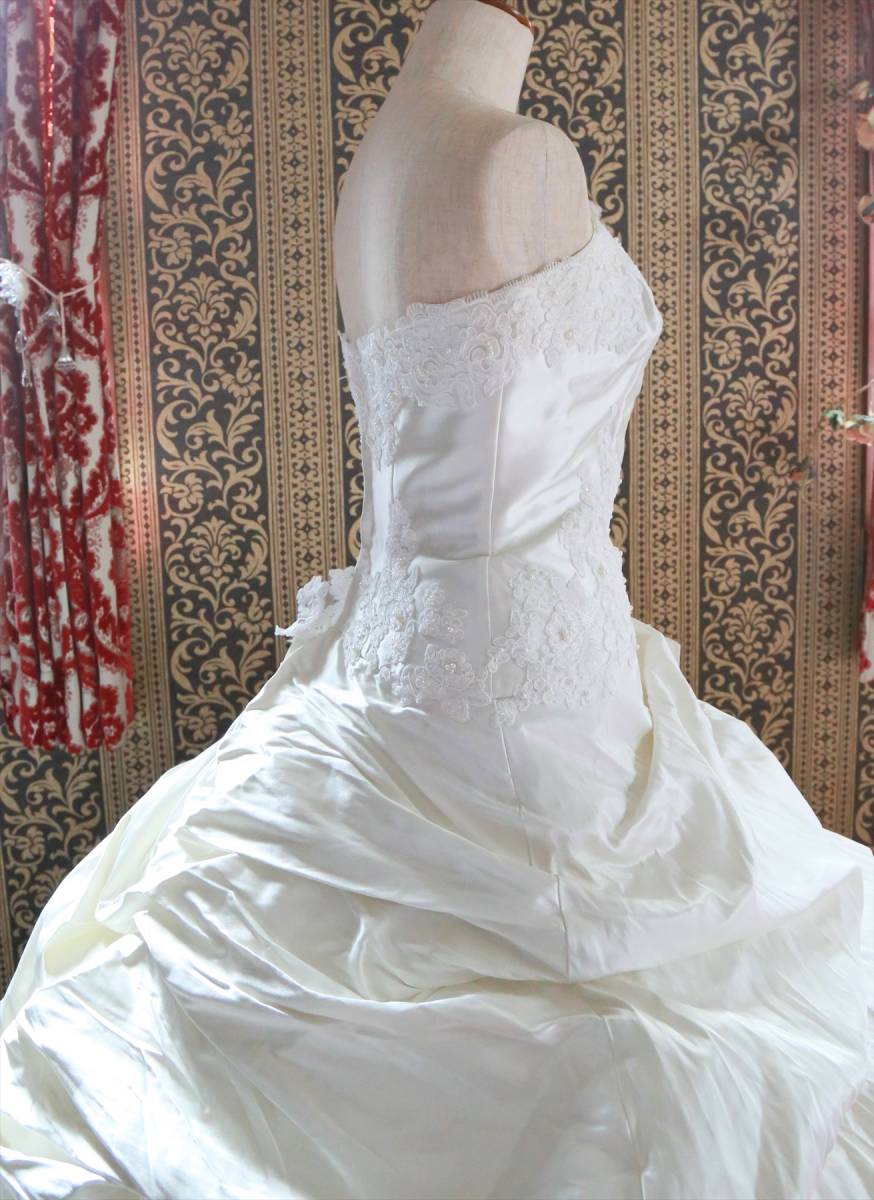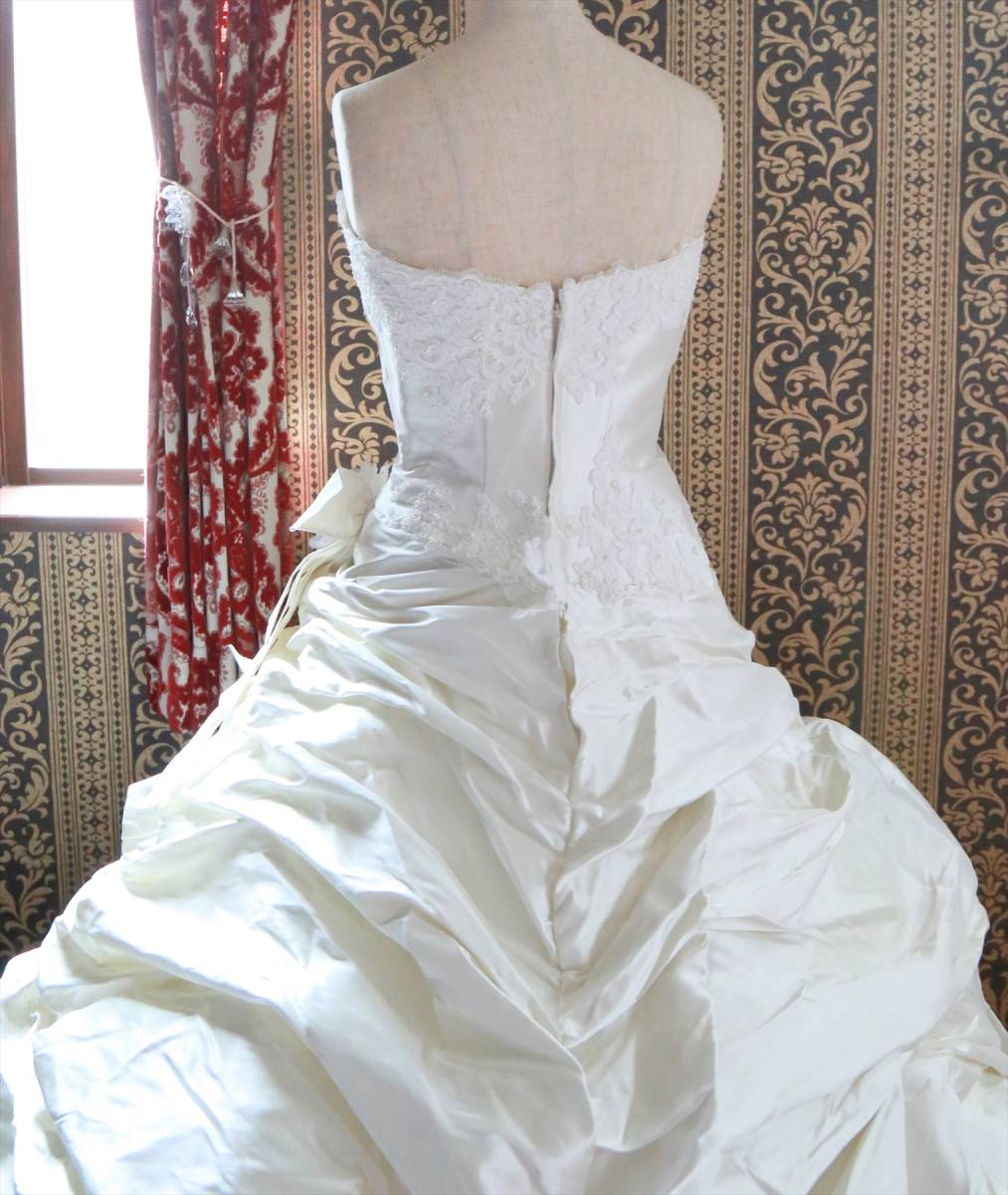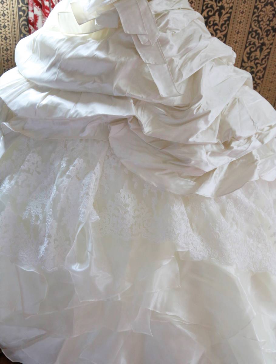 状態は綺麗な方だと思いますが、式場等で使用されるクラスのドレスはレンタルするだけでも高額な品ですし、生地が多く繊細な商品ですので、多少の糸引き・ビーズ取れ・小傷など多少の事はご理解ください。
