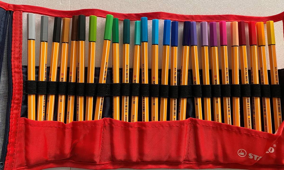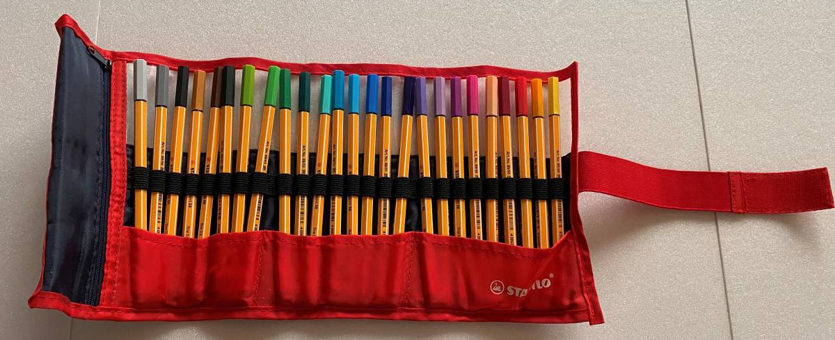 新品同様・ドイツ製STABILOスタビロ・ポイント88細字ペン25色セット・ペンケース入