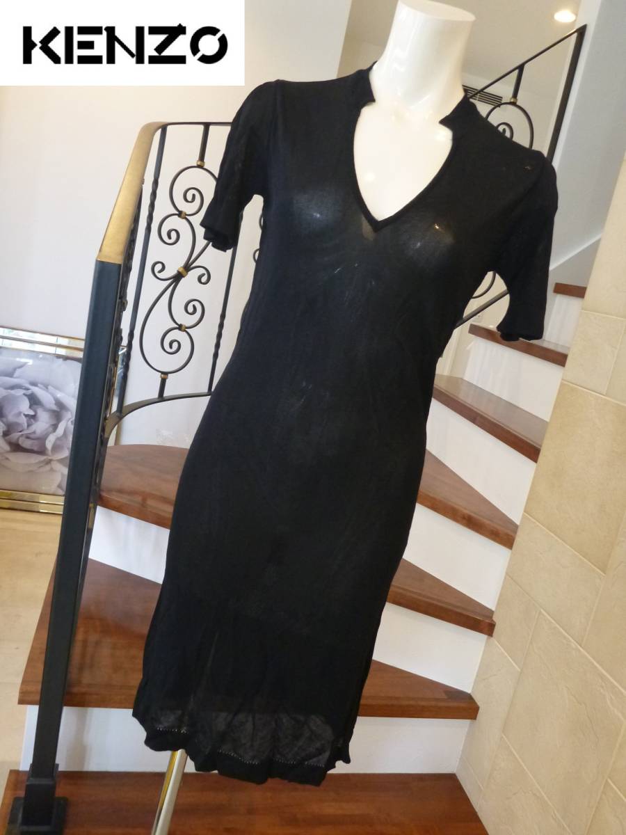 美品 KENZO ケンゾー ★ 黒 ブラック 半袖 ニット ワンピース L