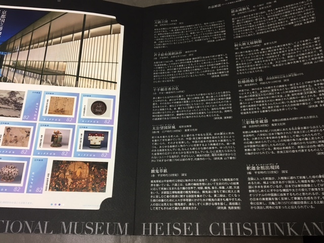 | 京都国立博物館 平成知新館 開館記念 82円×10枚 計1シート ●国宝 天橋立図 ●国宝 芦手絵和漢朗詠抄 ●千手観音香合仏 ●重文 太公望図屏風 ●国宝 餓鬼草紙 ●重文 縹糸威銅丸 ●重文 桐矢襖文様銅服 ●国宝 松椿蒔絵手箱 ●重文 三彩釉骨蔵器 ●国宝 釈迦金棺出現図 台紙付き、表面には多少のスレがあります。 段ボール紙添えて発送いたします。 | ||