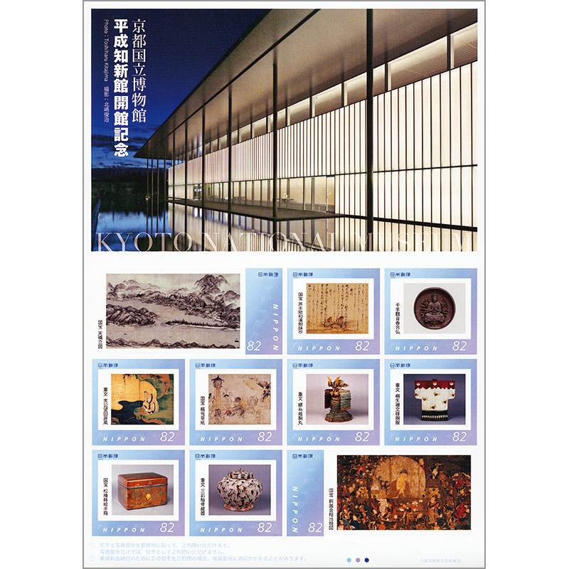 | 京都国立博物館 平成知新館 開館記念 82円×10枚 計1シート ●国宝 天橋立図 ●国宝 芦手絵和漢朗詠抄 ●千手観音香合仏 ●重文 太公望図屏風 ●国宝 餓鬼草紙 ●重文 縹糸威銅丸 ●重文 桐矢襖文様銅服 ●国宝 松椿蒔絵手箱 ●重文 三彩釉骨蔵器 ●国宝 釈迦金棺出現図 台紙付き、表面には多少のスレがあります。 段ボール紙添えて発送いたします。 | ||