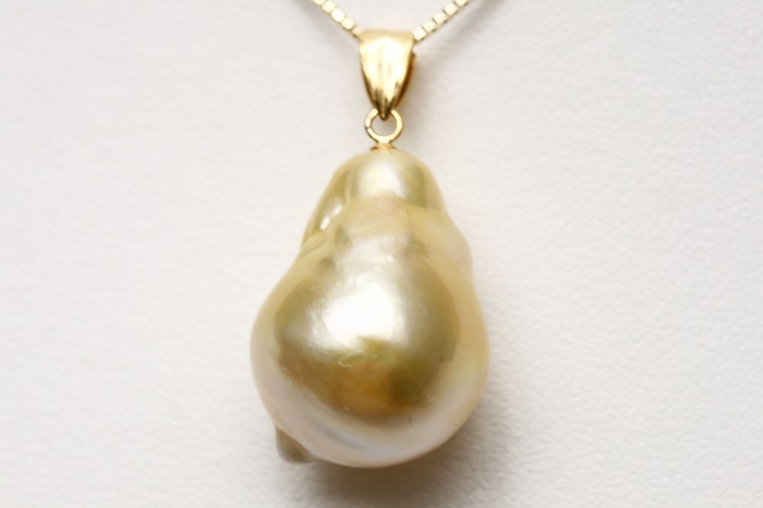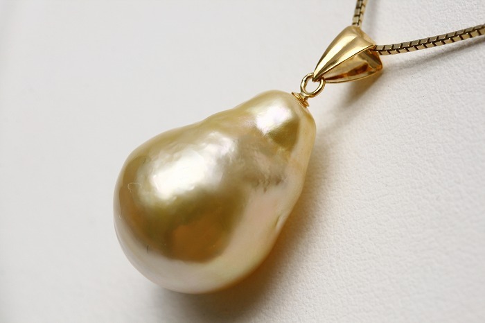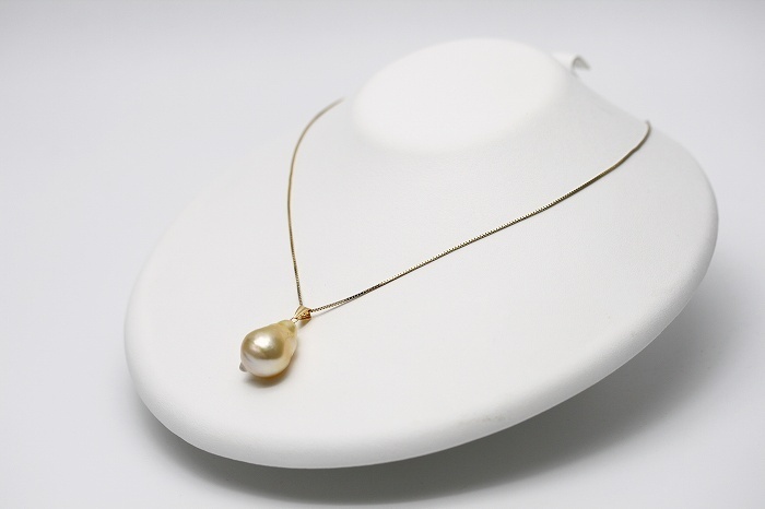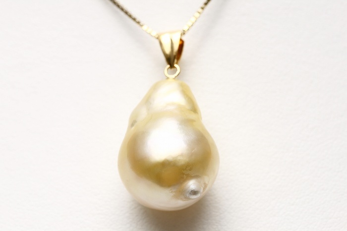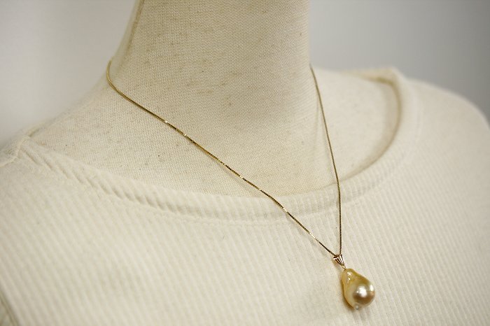 大粒15mmサイズの南洋パールをあしらったペンダントトップです。 上品なナチュラルゴールドの色合いが出ています。 15mmの大珠は抜群の存在感を放ちます。キズは多少見られます。 シンプルなデザインに仕上がっていますので, いつも胸元に輝かせて下さい。 | |