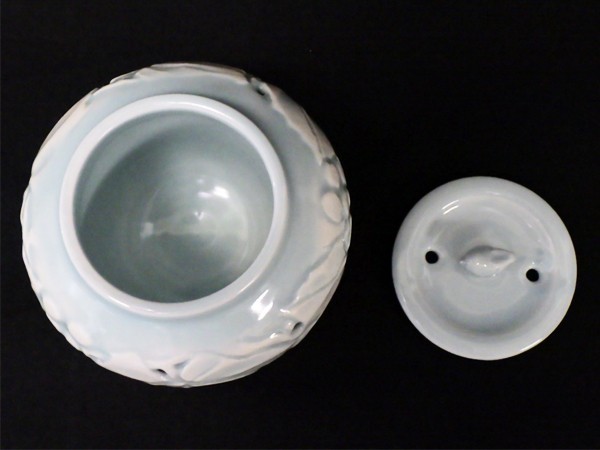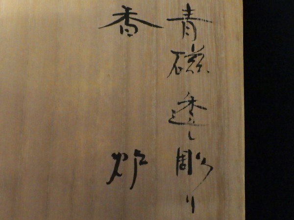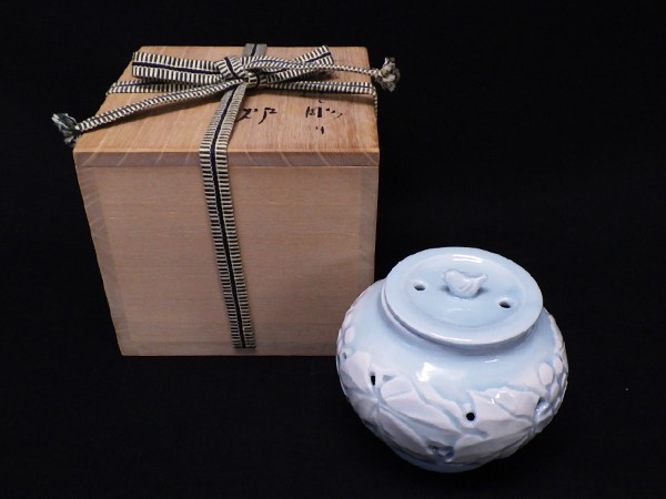 | 高井進 青磁 透かし彫り 香炉 共箱付 |