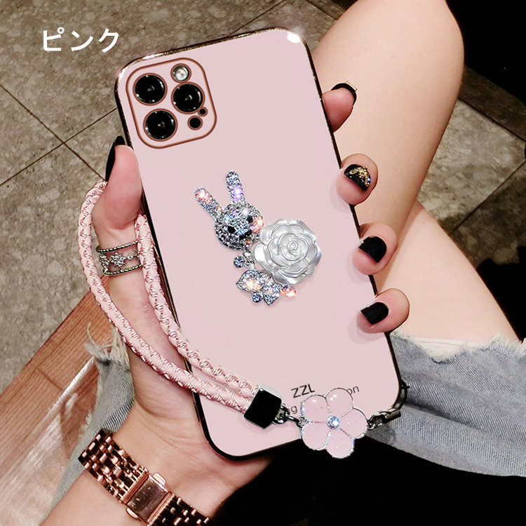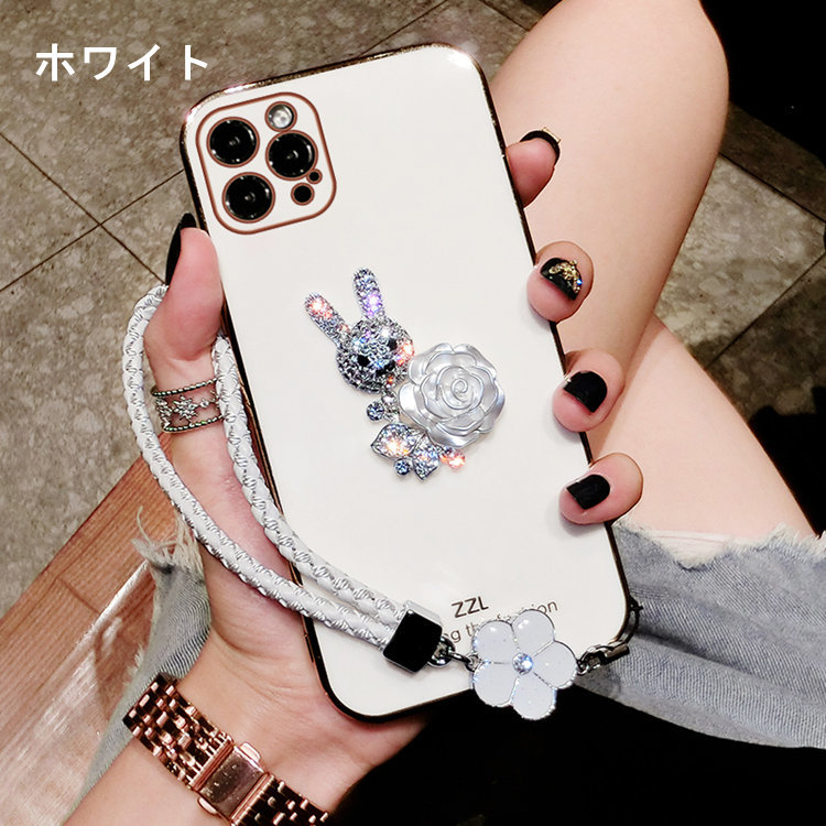 iPhone 13 ケース iPhone13 カバー Apple 6.1インチ スマホケース 保護 背面カバー ウサギ ストーン きらきら ストラップ付き おしゃれ | |||