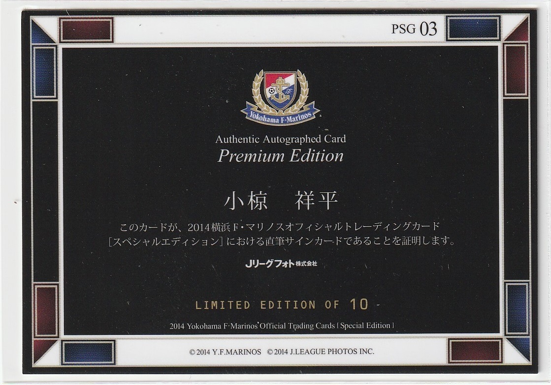 【小椋祥平】2014 横浜F・マリノス スペシャルエディション 直書き金サインプレミアム直筆サインカード[Limited edition of 10]
