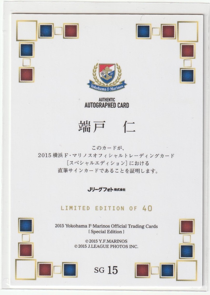 【端戸仁】2015 横浜F・マリノス オフィシャルカード スペシャルエディション 直書き直筆サインカード[LIMITED EDITION OF 40]