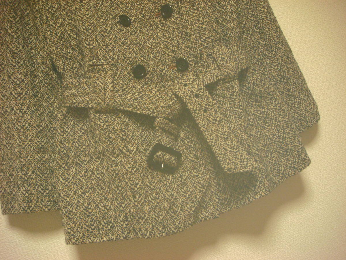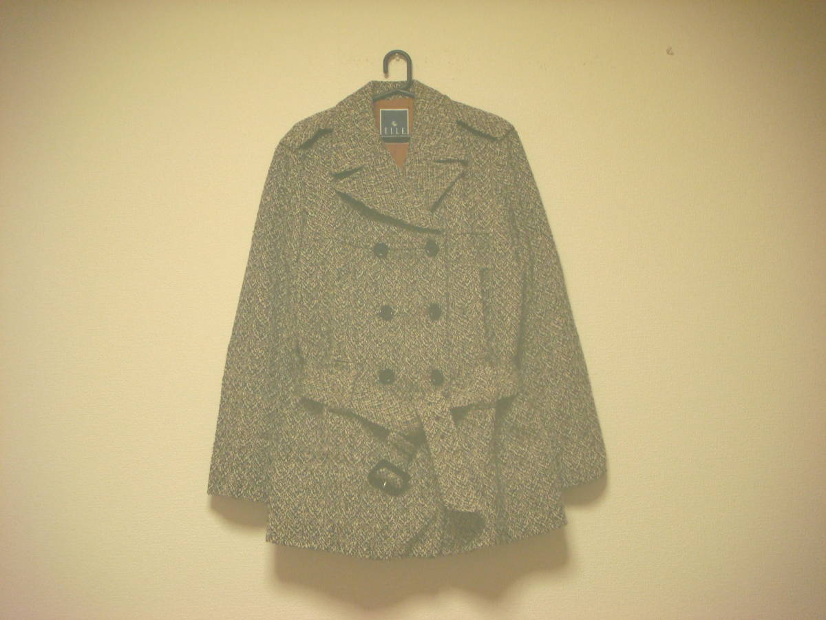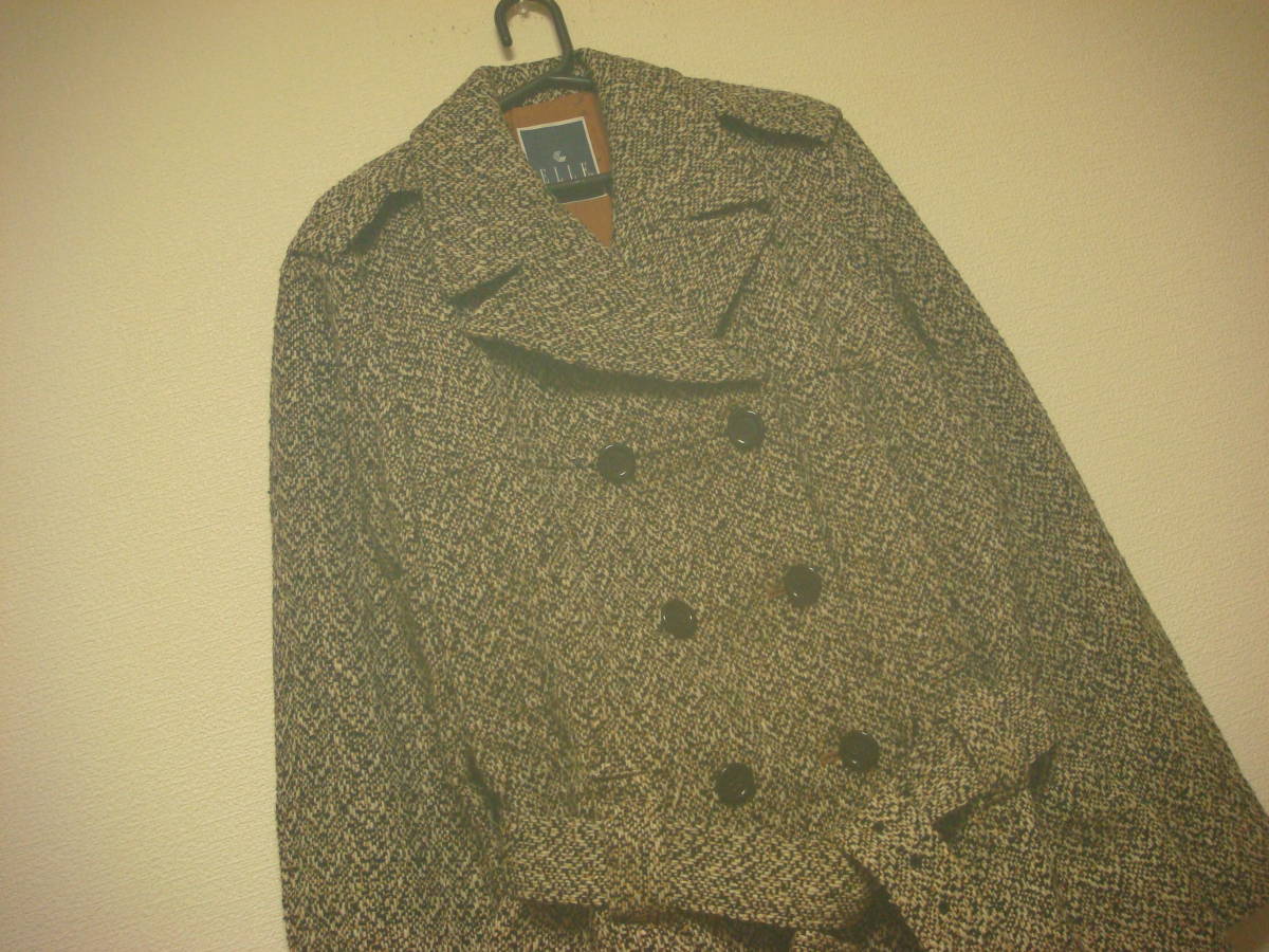 ELLE エル 厚手ツイード ベルト付き コート 黒キャメル 美品 38 黒オレンジベージュ