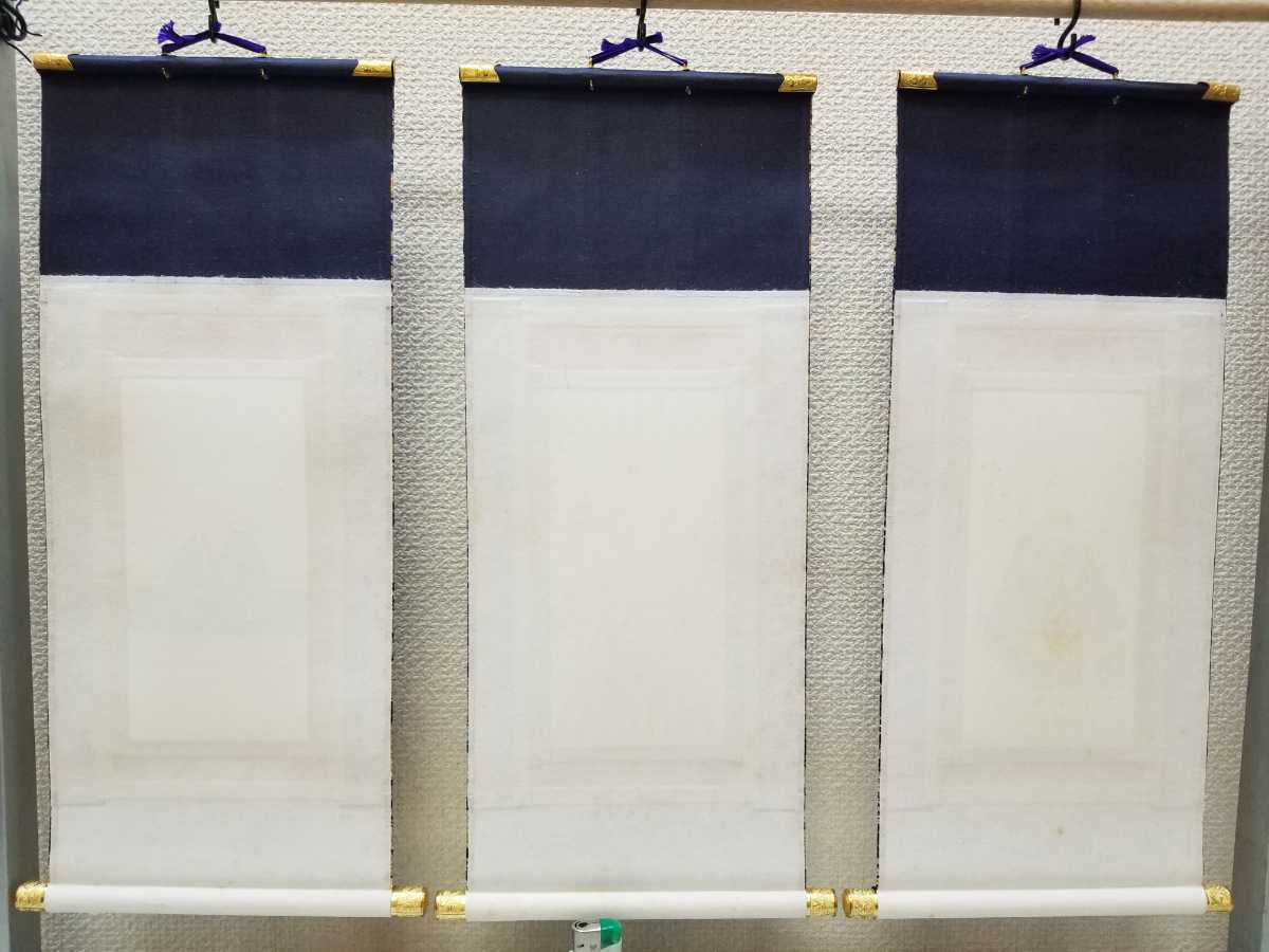 倉庫整理で発見し撮影のために開封しました、御影の絹本本紙には表裏面などシミやアラ、