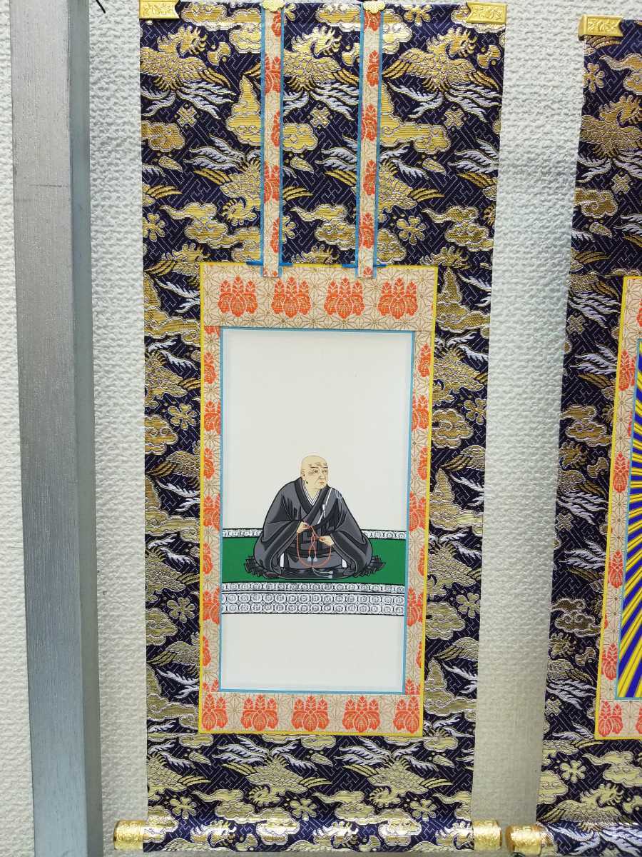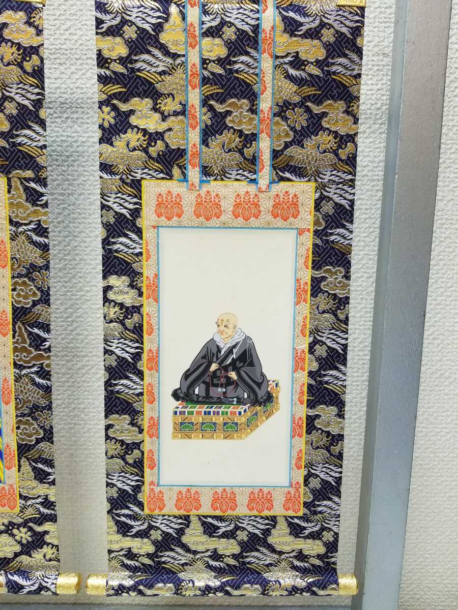 最上品 本格派掛軸 雲鳳本金金襴 親鸞・蓮如御影 浄土真宗 西本願寺紋 100代 丈450ミリ デッドストック アウトレット 仏壇お内仏