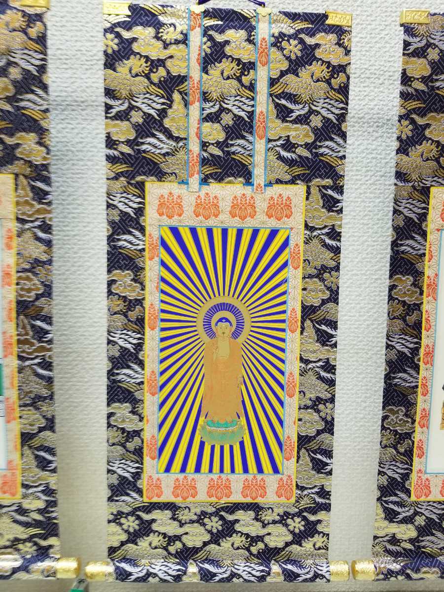 本金金襴は本金糸を使用していますので輝きが違います。親鸞・蓮如御影は上絹本の逸品となります。