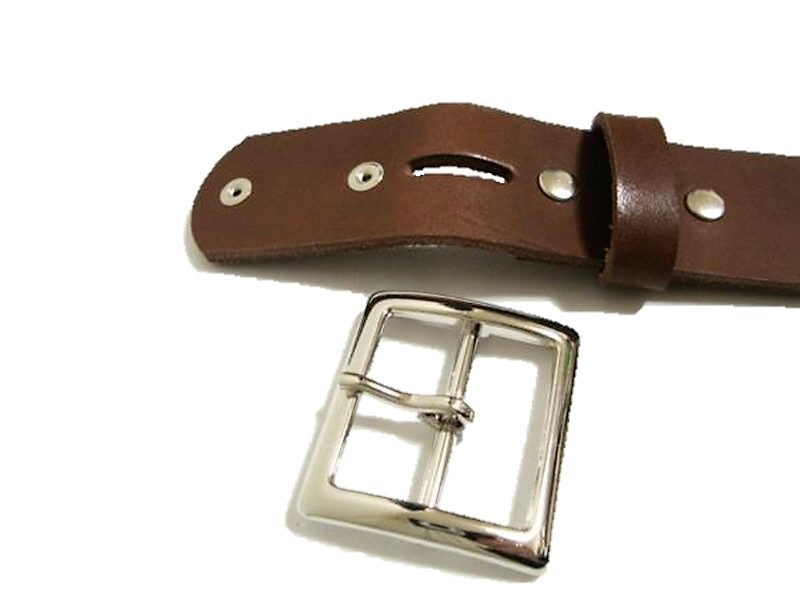 バックルはシングルピンです。 バックルとベルト本体との接続部分はバックルが取り外せるホック式になっています。