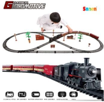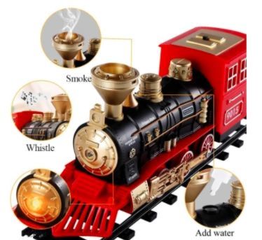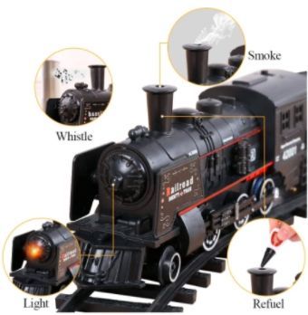 このクラシックな列車セットは、本物の煙を吹く電池式機関車で、LEDライトとリアルな列車の音が特徴です。