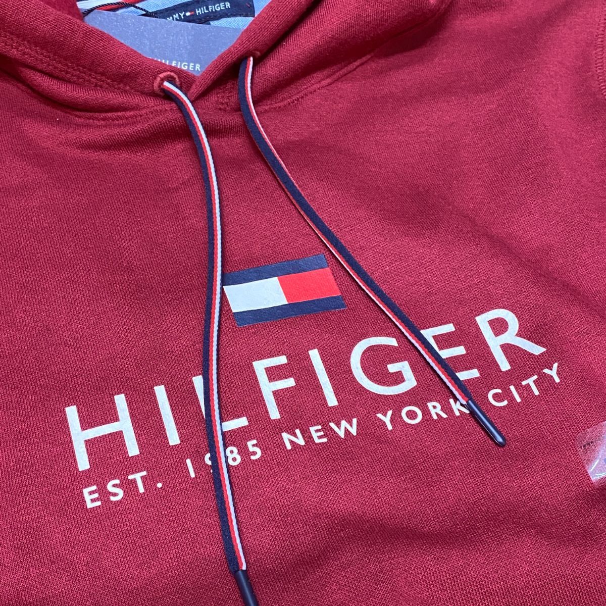 USA限定 【L】 TOMMY HILFIGERトミーヒルフィガー Core Besic プルオーバーパーカー 裏起毛 フラッグロゴ バーガンディ USA正規品