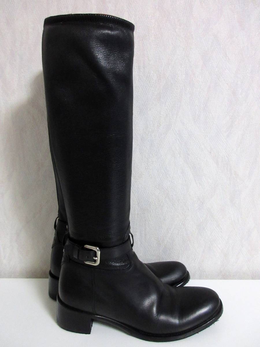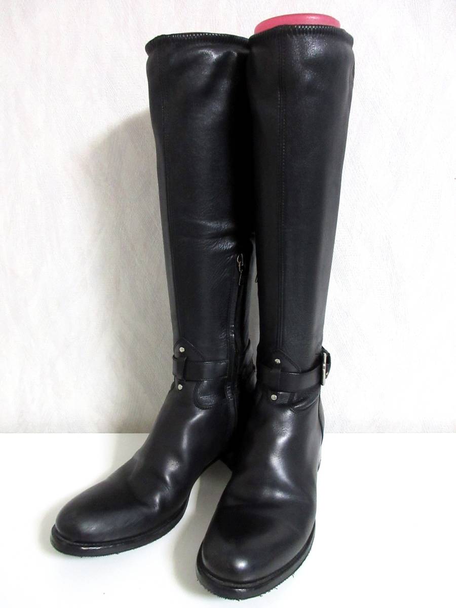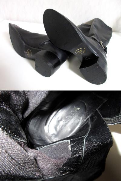 プラダ PRADA レザー ロングブーツ 黒 ブラック 36 北3619