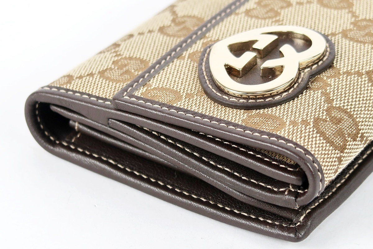 | 【新品同様・未使用】GUCCI グッチ GG シマ 二つ折り長財布 ベージュ系 245723・534563【KM15】 |