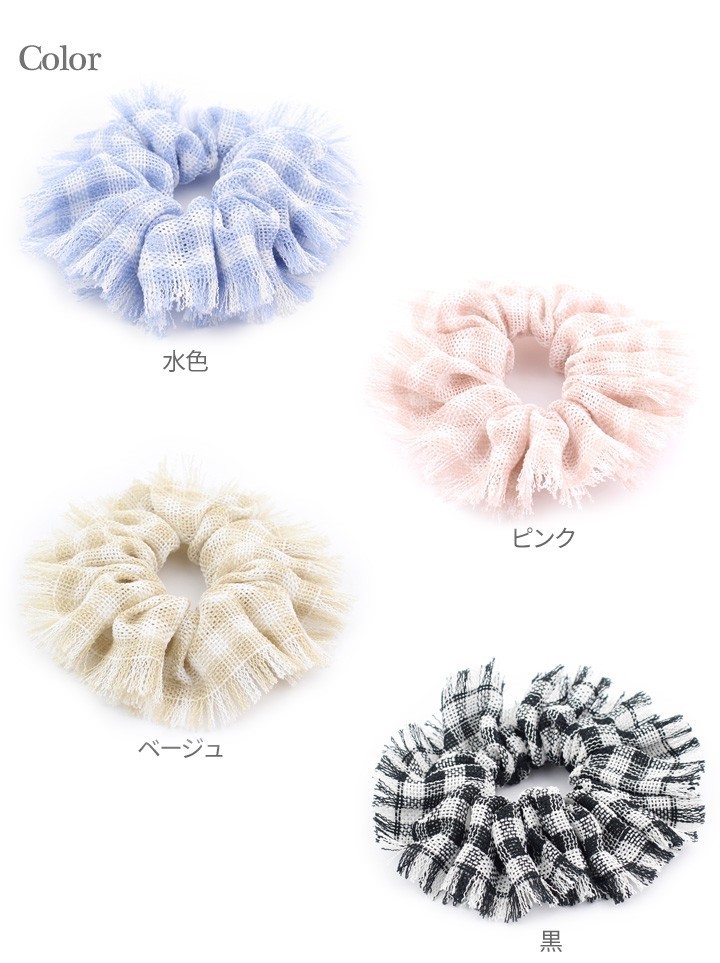 商品説明 | 定番☆シンプルチェック柄デザインのシュシュ。 白とのバイカラーで春夏にピッタリ!! 暑い夏も爽やかストライプで吹き飛ばそう!! |