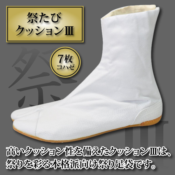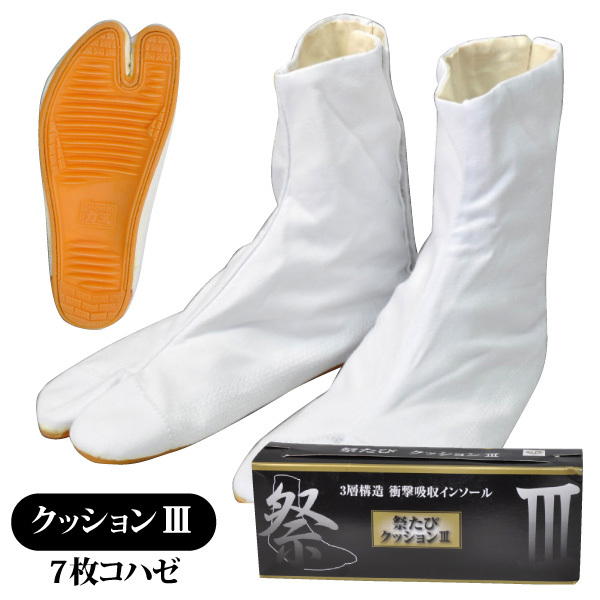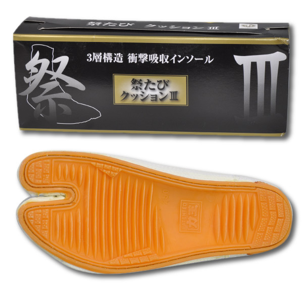 祭りたび 力王クッション3(スリー)7枚コハゼ 白 【24.0cm】衝撃吸収性、反発性、柔軟性を持った3層インソール内蔵。