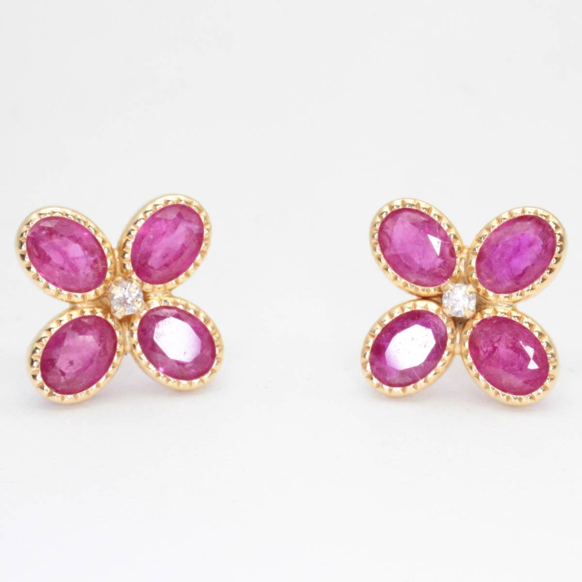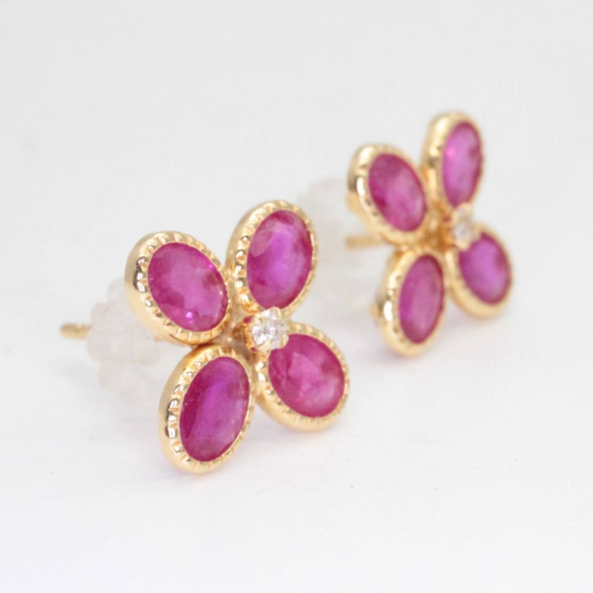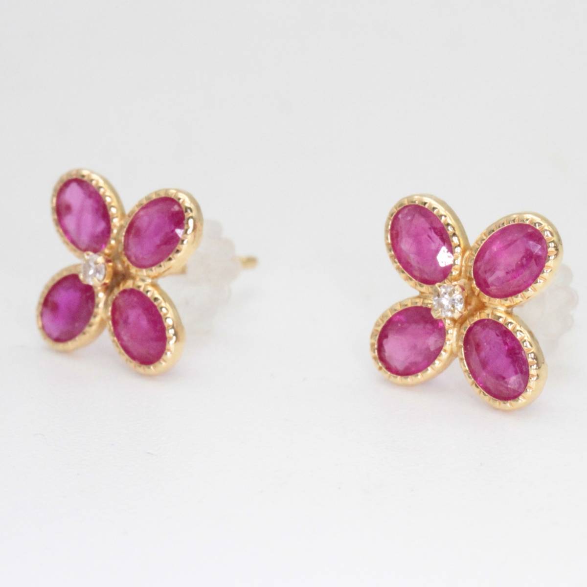 ◆◇【美品】ルビー ダイヤモンド クローバーデザイン ピアス K18YG/0.8g◇◆ | |