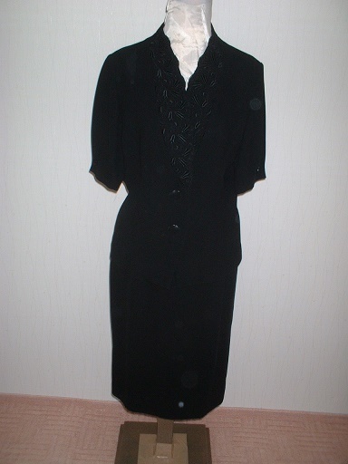 han① 美品☆即買♪LoveLiaisonブラックフォーマル喪服 ジャケット 刺繍半袖ブラウス タイトスカート 3点セット オールシーズン 1回使用
