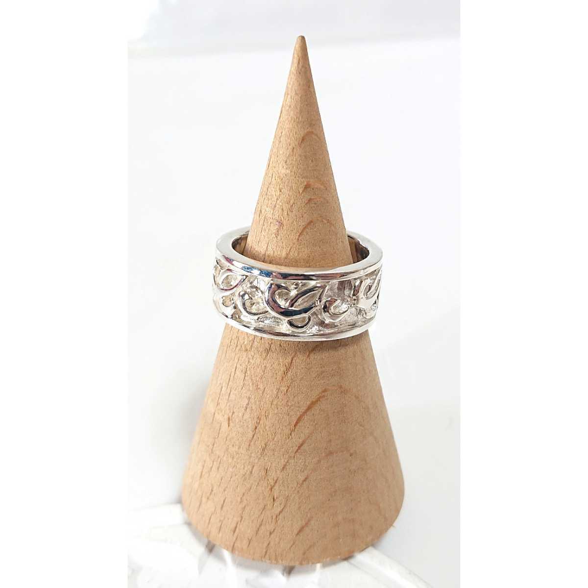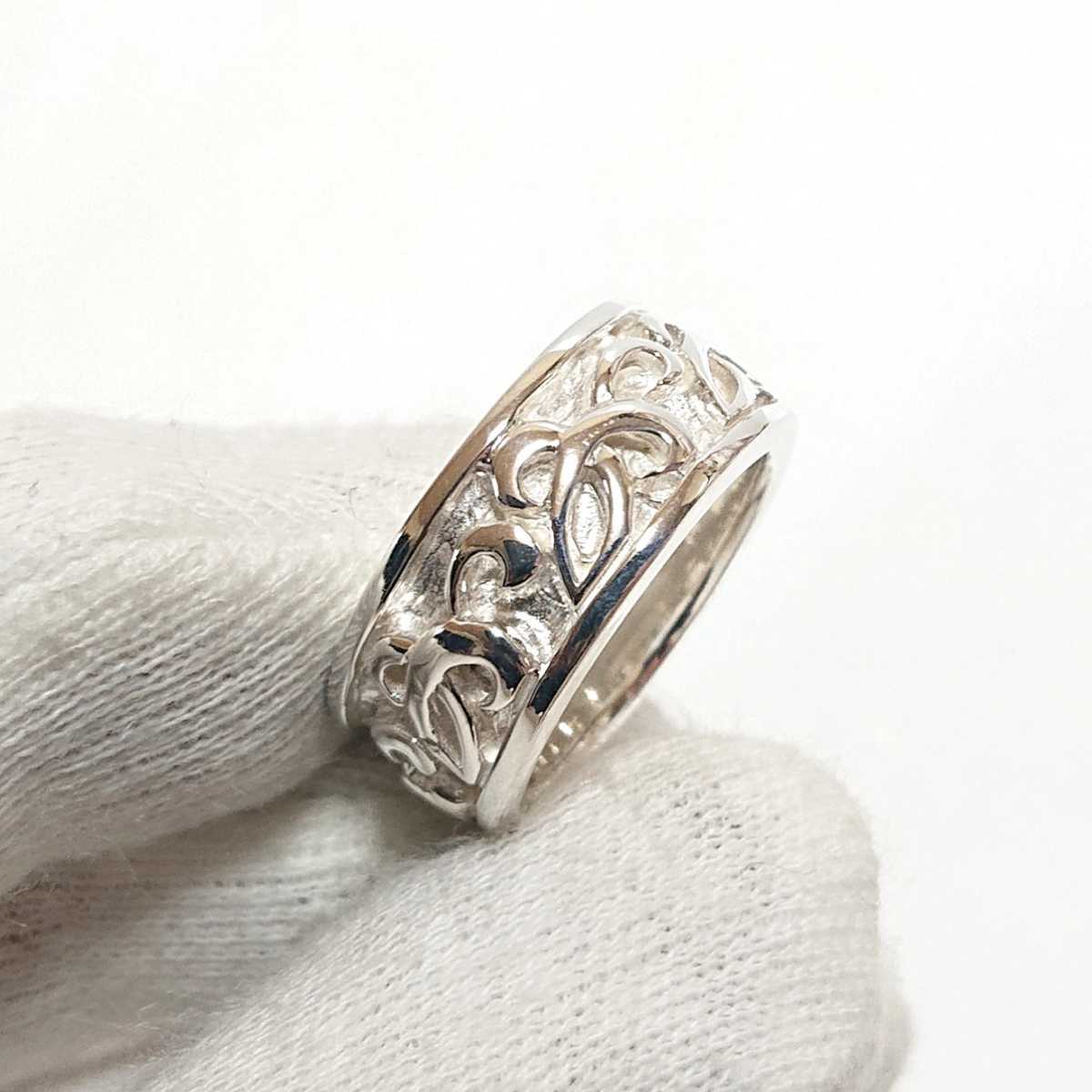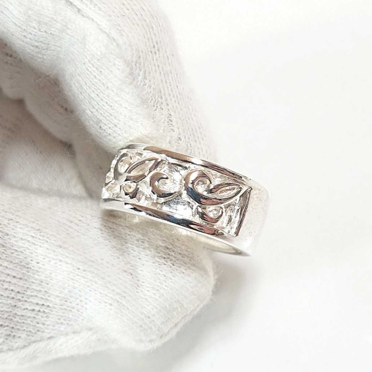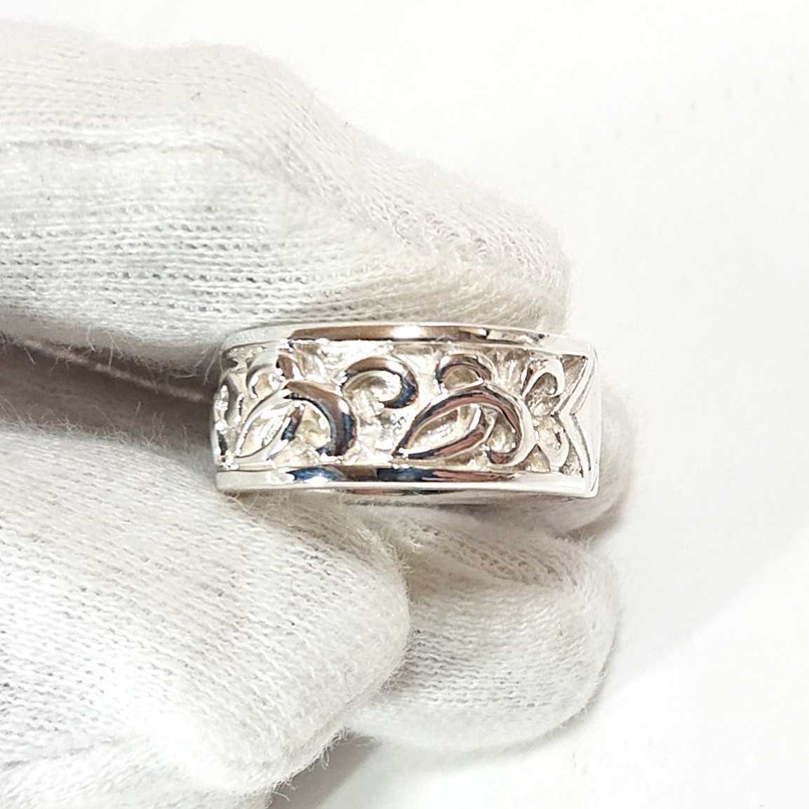 平打ちリングに流れるような美しいアラベスクを彫り込まれ