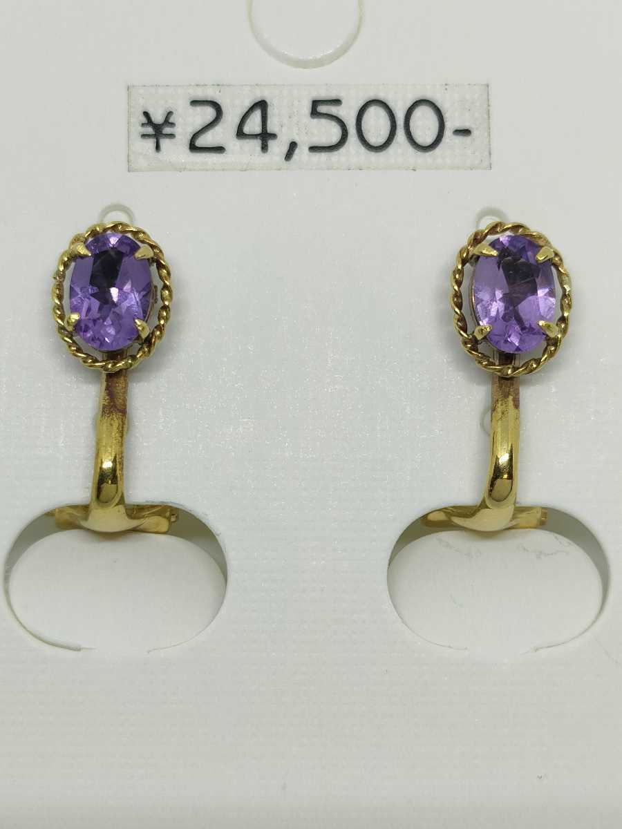 パープルカラーが綺麗なアメジストのイヤリングです。