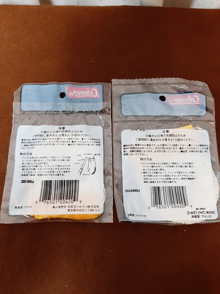 【希少】コールマン200等マントル Gold-Top 2枚×2袋 21110245