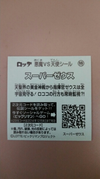 ロッテビックリマン伝説 スーパーゼウス 特 です。貴重なステッカーです。