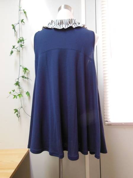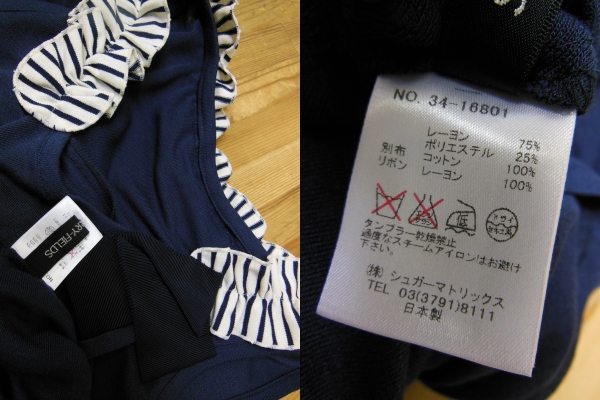 ネックラインのボーダー柄のフリルと左胸元のリボンがフェミニンなアクセントになっております。