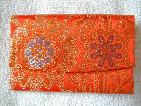 手作り 金襴カードケース 名刺入れ 保険証入れ (橙金)