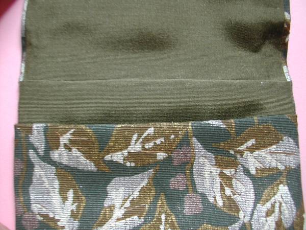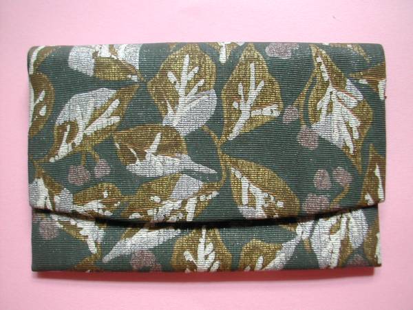 手作り 金襴カードケース名刺入れ保険証入れ(深緑に葉)