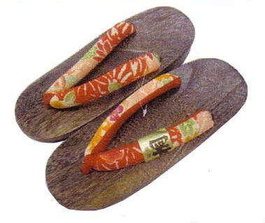 ●●新品・桐下駄(焼桐)小判型・赤地菊・サイズ26㎝●●