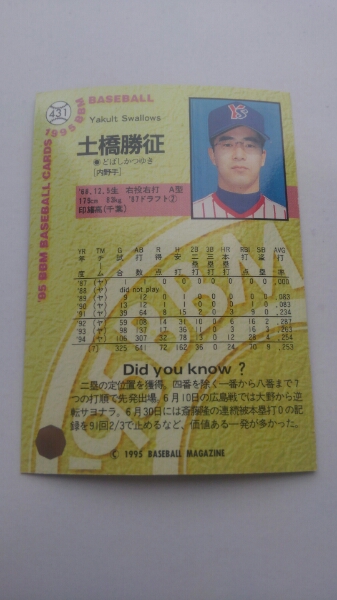 東京ヤクルトスワローズ土橋勝征現コーチ!1995BBM431 |