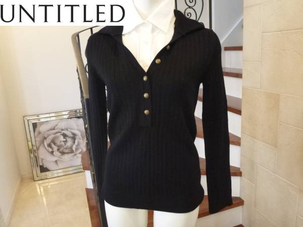 1.5万 美品 UNTITLED (アンタイトル) 黒 リブ編み シャツ一体型